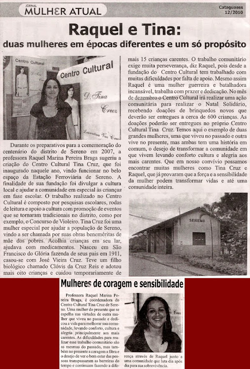Inauguração do Centro Cultural Tina Cruz, publicada no dia 26 de agosto de 2007, no Jornal Cataguases. Leia também o discurso proferido …
